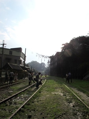 因為終點站車次隔比較久所以大家都不怕死的下來軌道東拍西拍摟!~